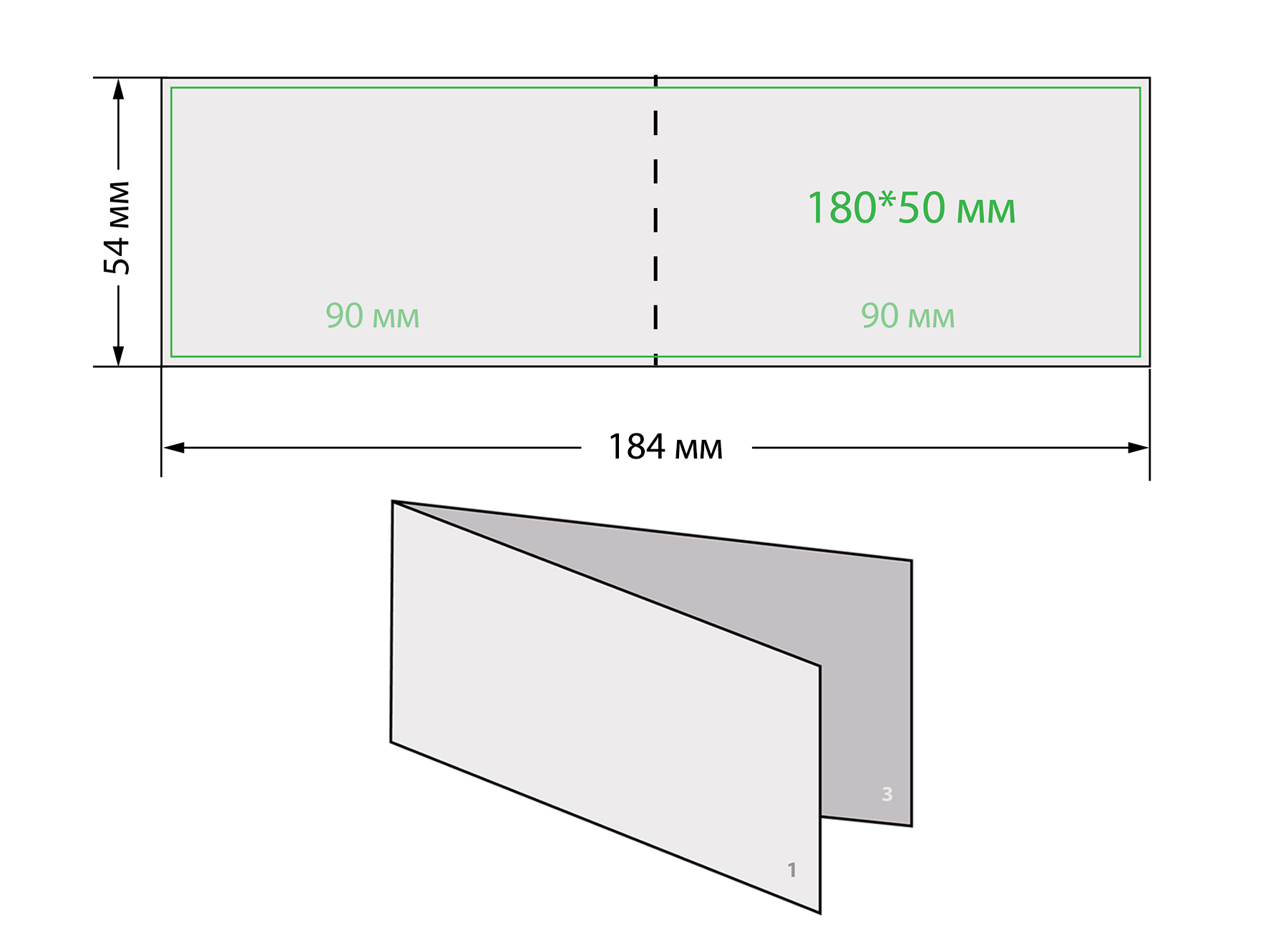 90×50 мм — в готовом виде 90×50 мм, подавать для печати 92×52 мм (по 1 мм с каждой стороны под обрез). Важные элементы публикации должны располагаться не ближе 4 мм к краям оригинал-макета.