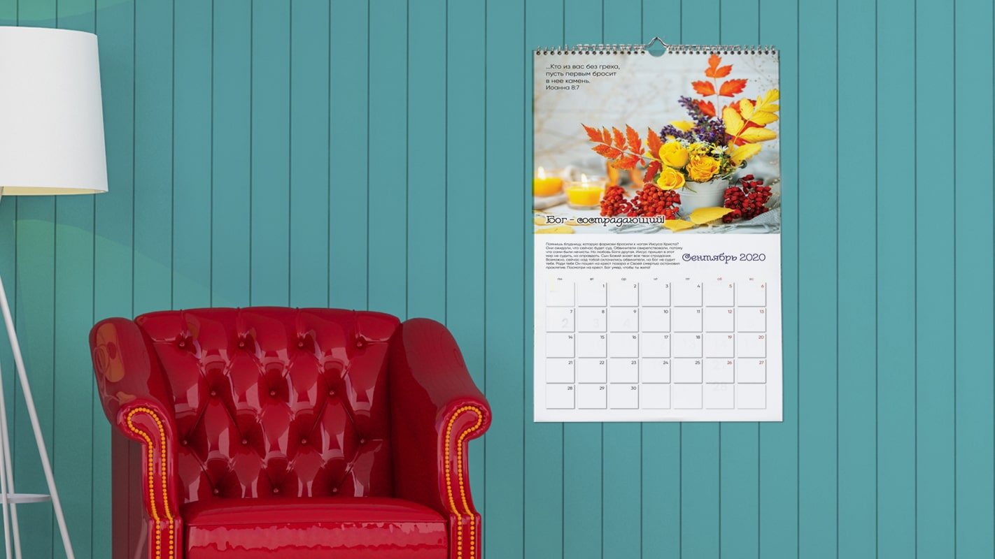 • Стоимость разработки дизайн-макета настенного перекидного календаря А3: