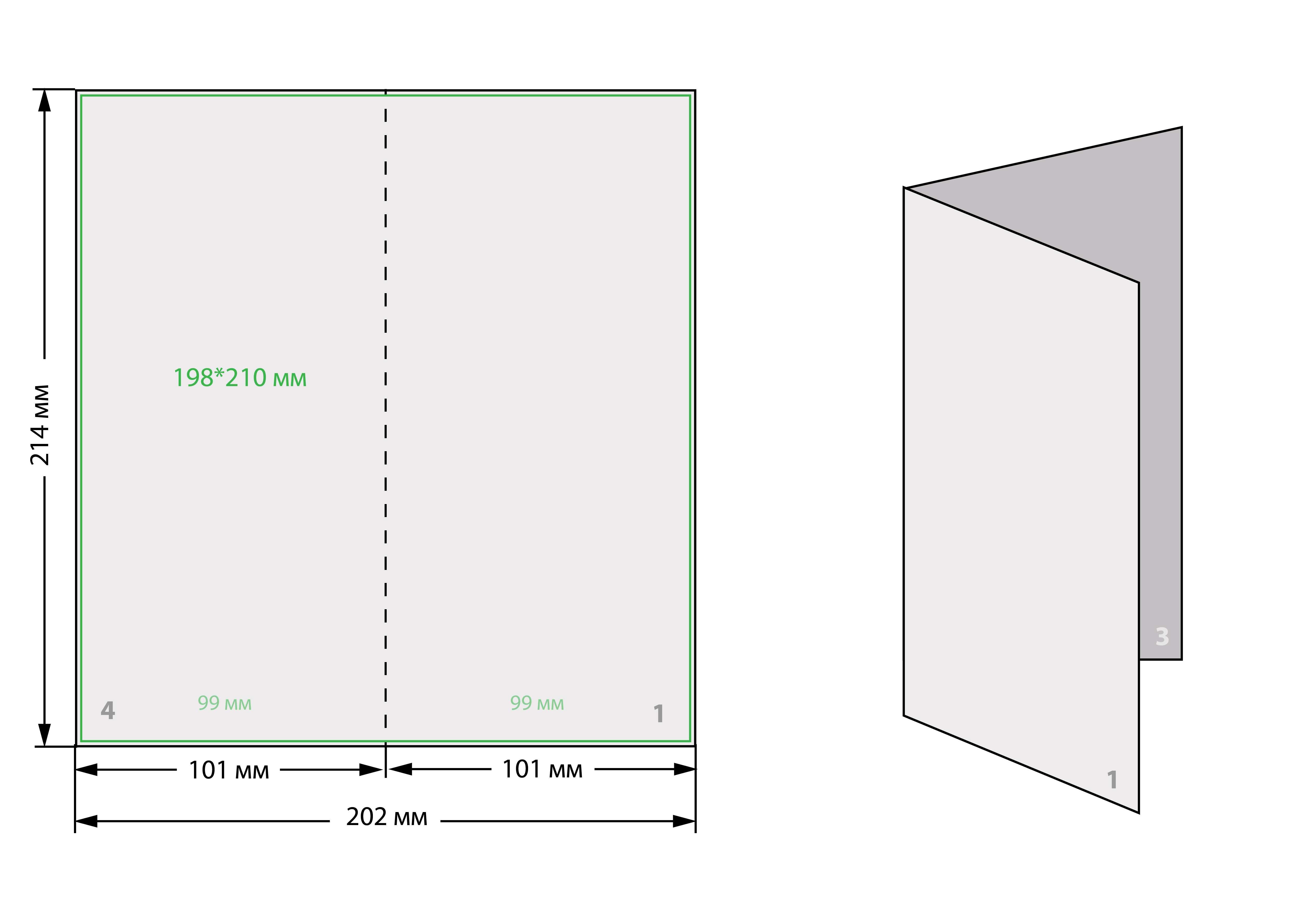- В готовом виде 100×180 мм, подавать для печати 104×184 мм (по 2 мм с каждой стороны под обрез).