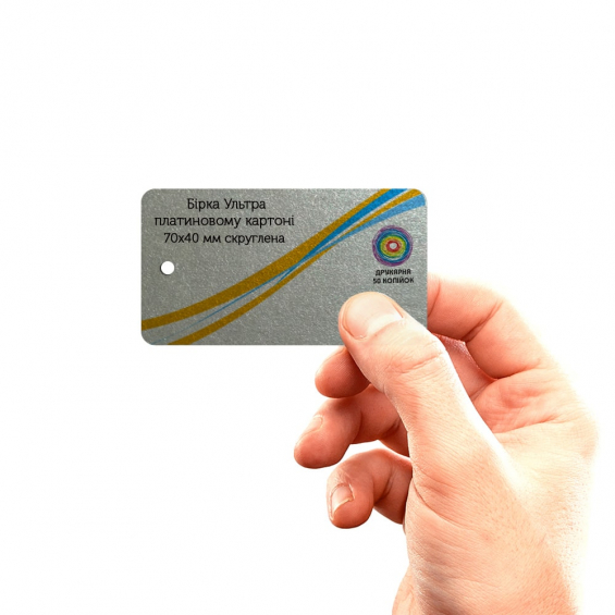 • Вартість розробки дизайн-макету бірок округлених "Платина" 70х40мм 125 — 200 грн.
