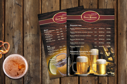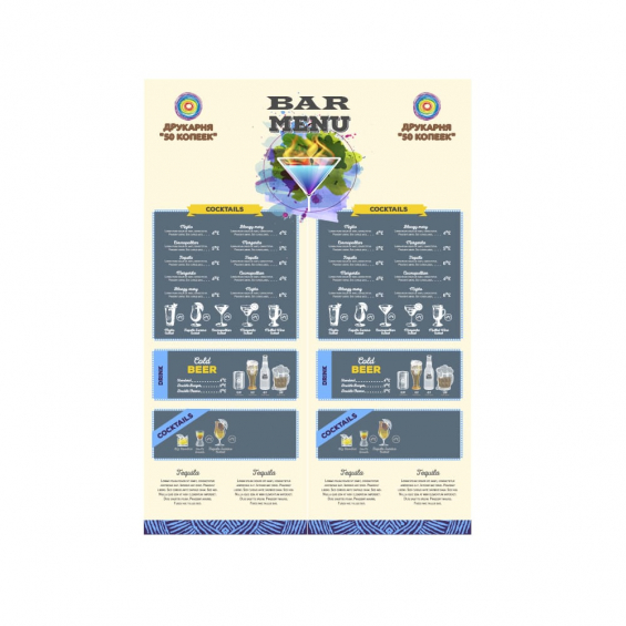 • Вартість розробки дизайн-макету барної карти А4 430 грн/1стр.