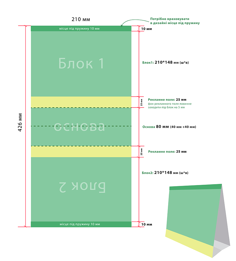 • 1000 шт. і більше — подавати для друку 210×91 мм. Важливі елементи публікації повинні розташовуватися не ближче 4 мм до краю обріза.