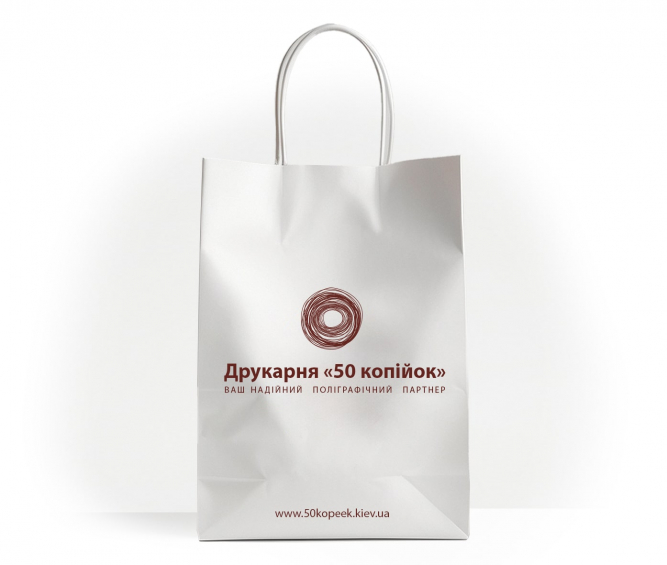 Крученые бумажные ручки из крафт-бумаги надежно приклеены изнутри пакета.